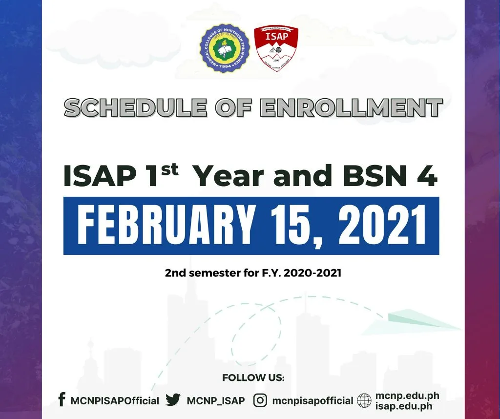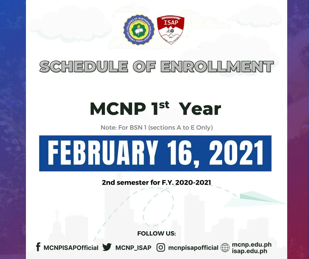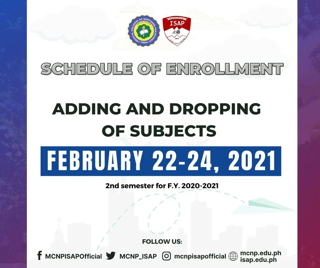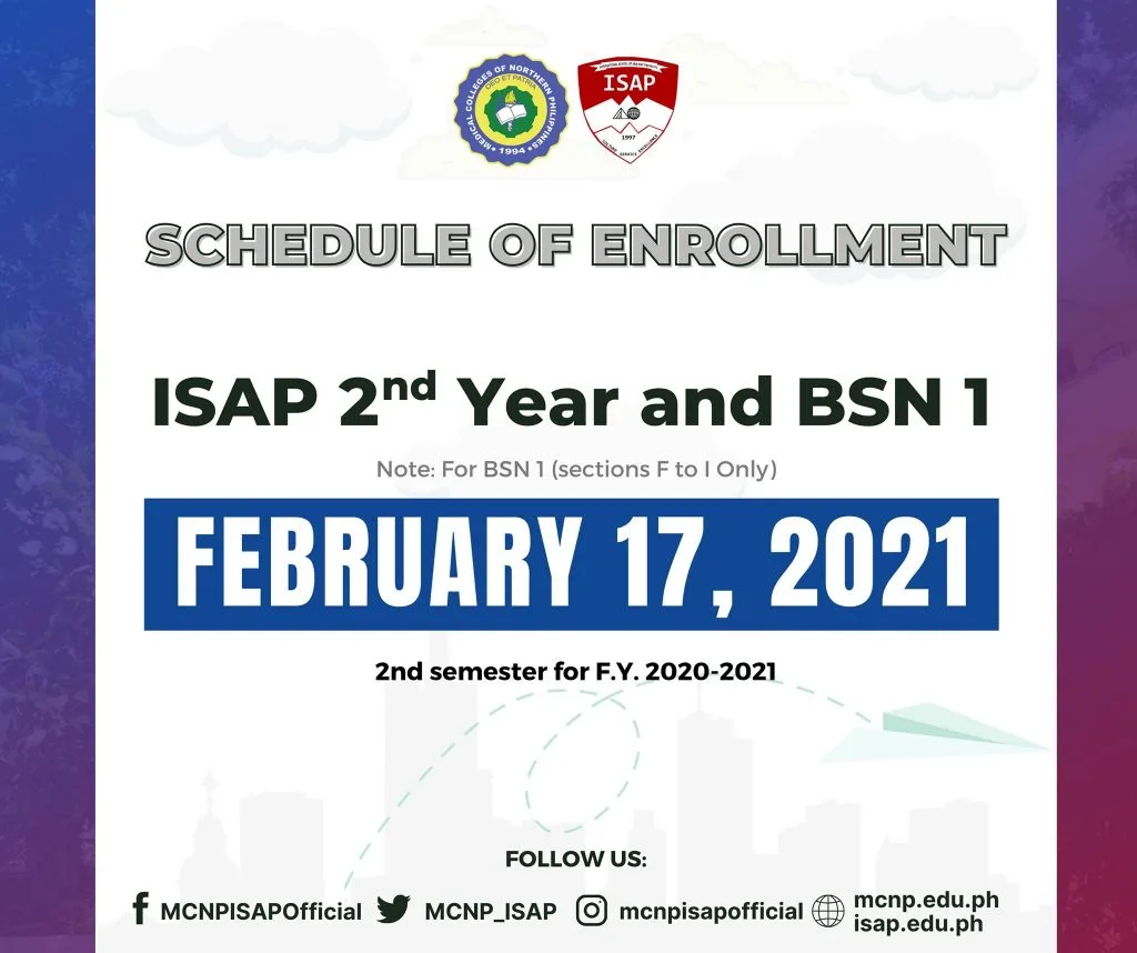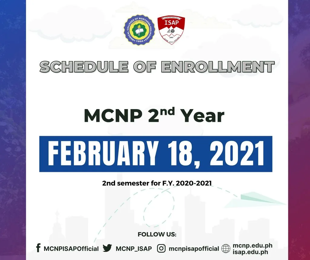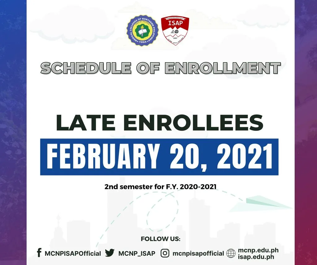 Schedule of EnrollmentMighty Eagles! Please be informed of the following schedules for the 2nd Semester of F.Y. 2020-2021.